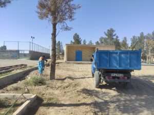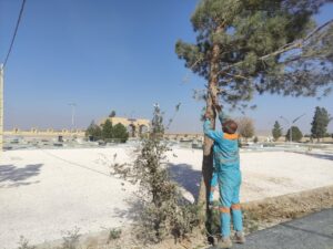 هرس و ساماندهی درختان آرامستان محله نصرت‌آباد