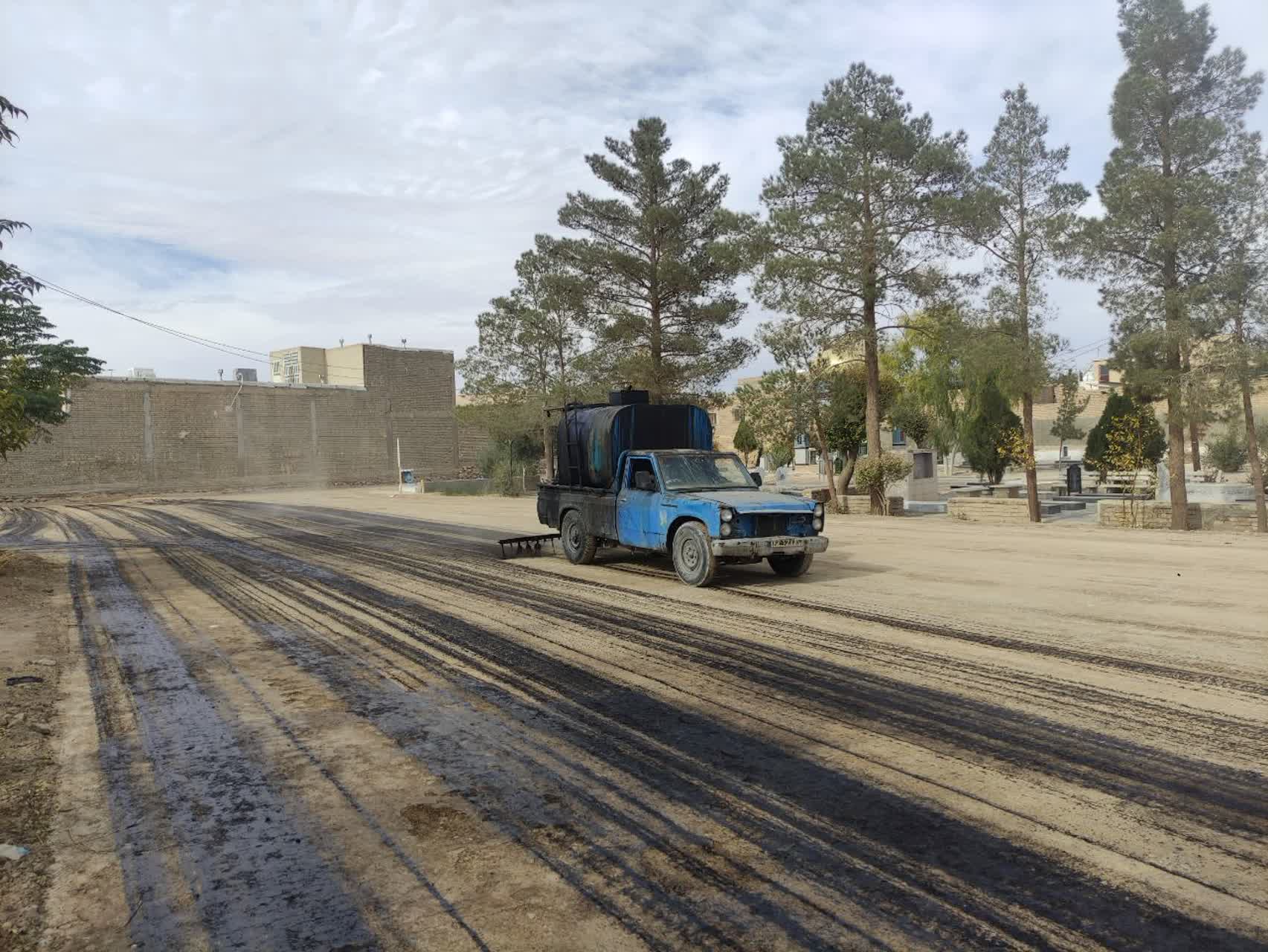 عملیات قیرپاشی در محوطه آرامستان محله اردی