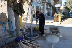 عملیات حفر چاه جذبی در خیابان شهید رجایی