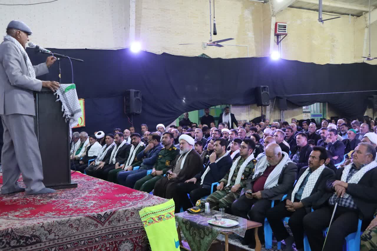 در این آیین باشکوه که با حضور پرشور جمعی از بسیجیان در حرم مطهر امامزادگان(ع) شهر مهردشت برگزار شد، امیر سرتیپ علی هاشمپور بختیاری به ایراد سخنرانی پرداخت و بر نقشآفرینی بسیج در پاسداری از ارزشهای انقلاب اسلامی تأکید نمود.