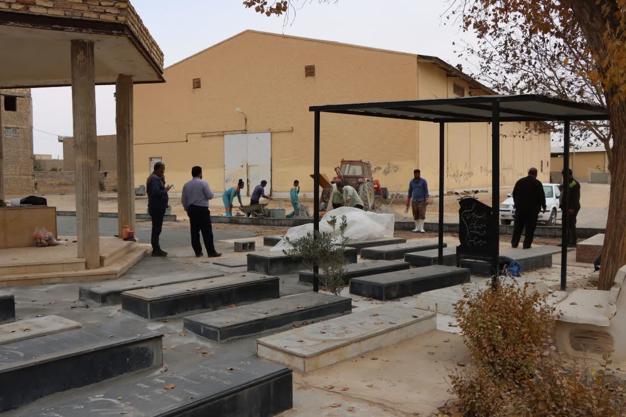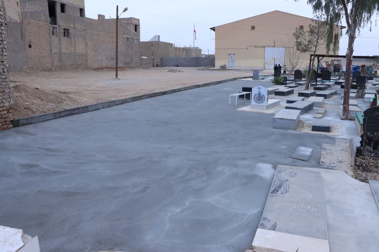 تداوم عملیات ساماندهی و اجرای بتن محوطه آرامستان محله اردی